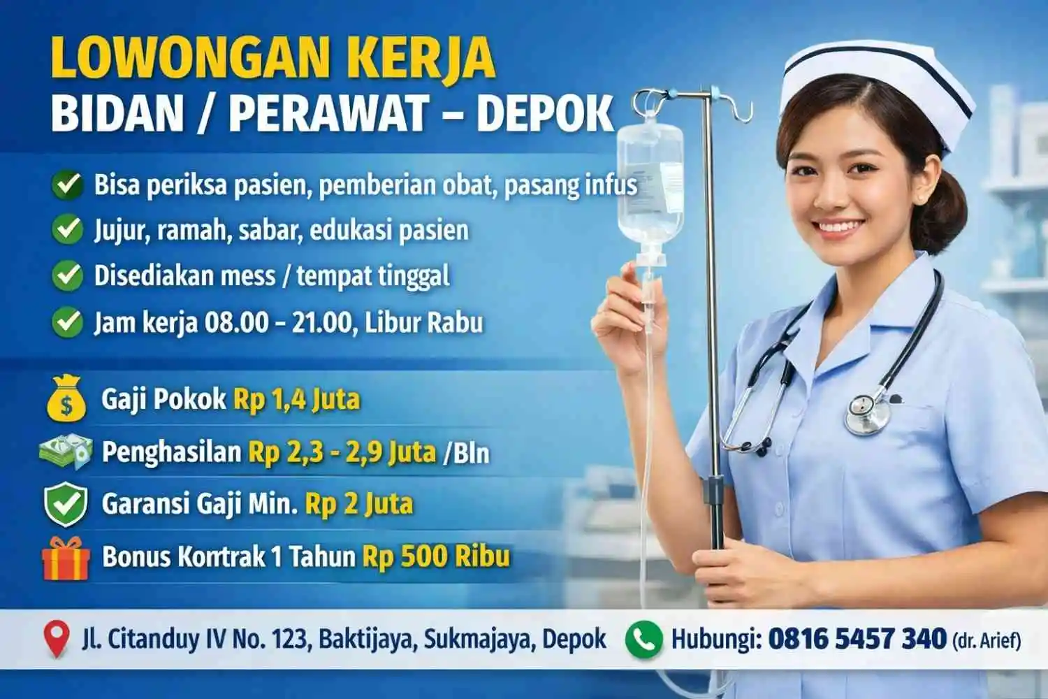 Detail Informasi Lowongan Kerja Bidan atau Perawat di Depok